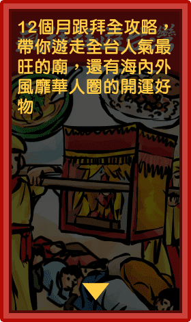 最常見的民間信仰,用虔誠的心靈祈求運勢 好轉,不分宗教只要誠心,常常會有靈驗的 時候。機緣到自然會找到屬於自己的主神, 運勢低迷心裡有苦,在靠近自己的主神後自 然會有不同的轉機。