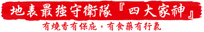 家是每個人養精蓄銳、韜養元神之住所!而家神,是保護家宅、提升家運的神祇!一個人是否能夠元神光彩、運勢亨通都跟家神息息相關。家運之所以格外重要,是因為關係著這個家中「所有居住者」的財運、感 情、健康、平安等四大運勢。運勢不好、每天睡不安穩、失眠精神不佳, 除了會受屋外環境、居家格局、風水擺設影 響之外,更與因為入宅、搬家時沒有拜「家神」息息相關!