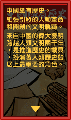 造紙術是中國的四大發明之一,傳遍世界,促進了文化交流與教育的普及,深深影響世界文明發展過程,是一項重大的貢獻。蔡倫是中國漢代人,也是古代造紙術的發明人。